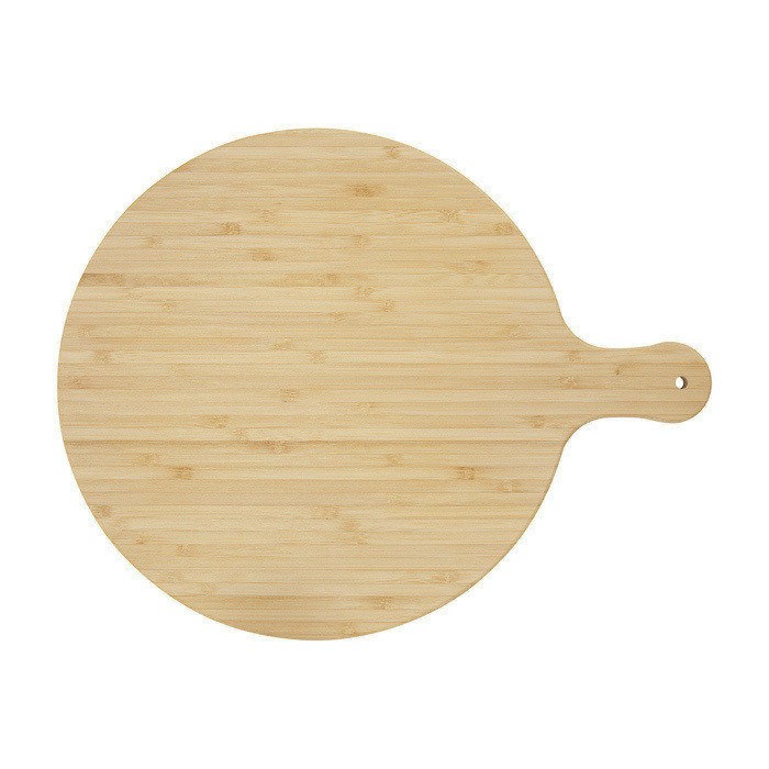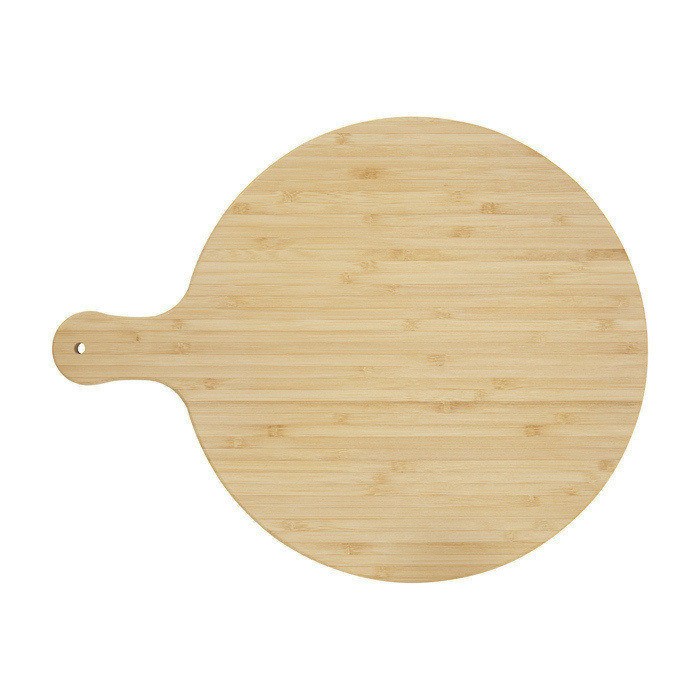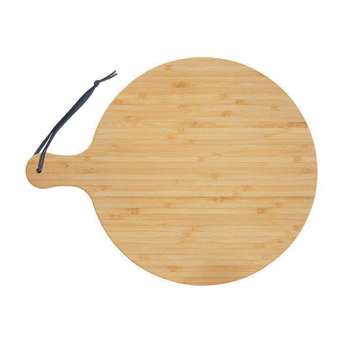 Tagliere realizzato in bambù, ideale per persone e aziende che prediligono una scelta più sostenibile. Diametro del tagliere: 30,5 cm. Lunghezza del manico: 8 cm. Spessore del tagliere: 1,4 cm. Non adatto per il microonde e la lavastoviglie.