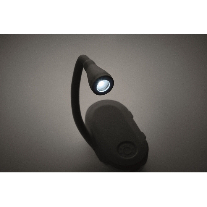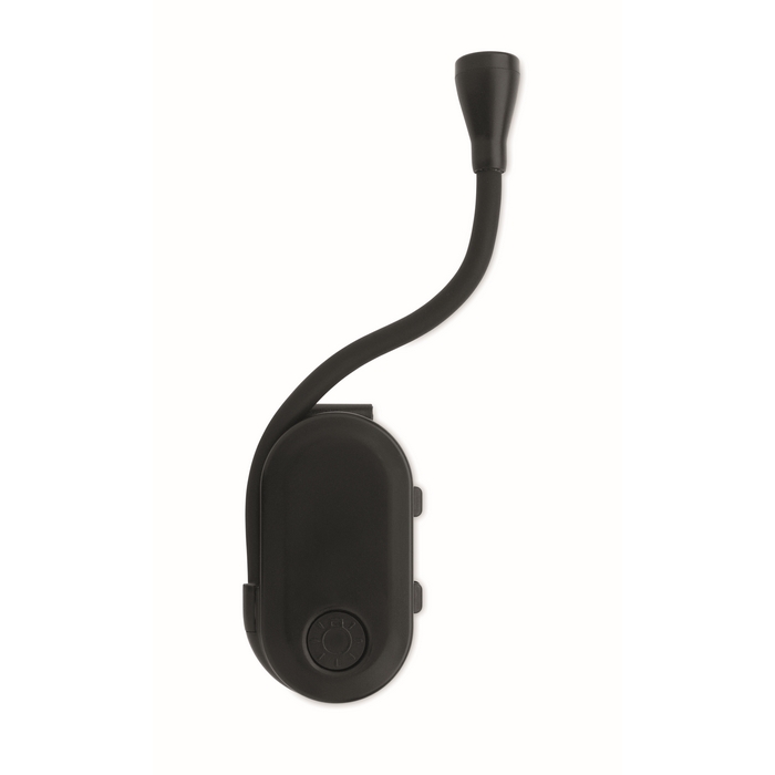 Luce LED ricaricabile, compatta e versatile con corpo flessibile e pratica clip. Trasforma la tua lettura o il tuo lavoro con 3 impostazioni di illuminazione firmate dal tuo logo.