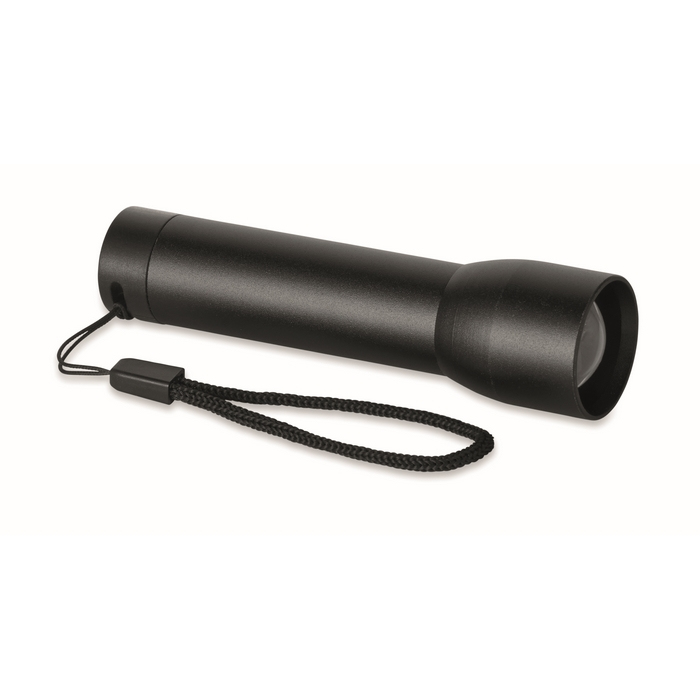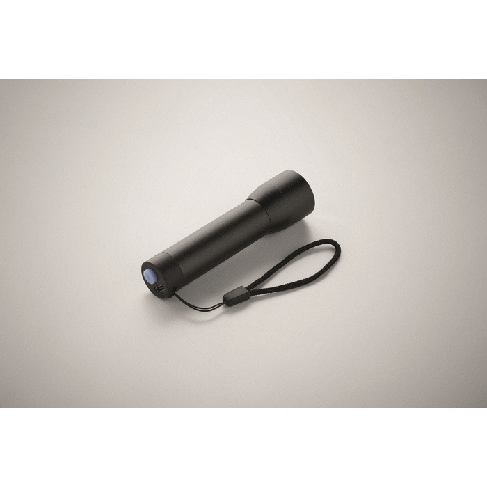 - Torcia ricaricabile in alluminio con zoom e diverse modalità di luce