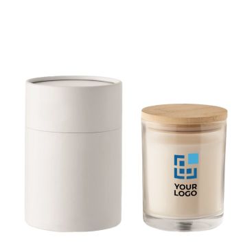 Candela alla vaniglia in vasetto vetro con coperchio di bambù Scented