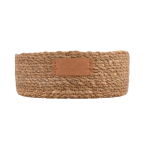 Cesta rotonda realizzata con fibre vegetali formate con alghe intrecciate. Comprende, su un lato, un'etichetta in PU per la personalizzazione