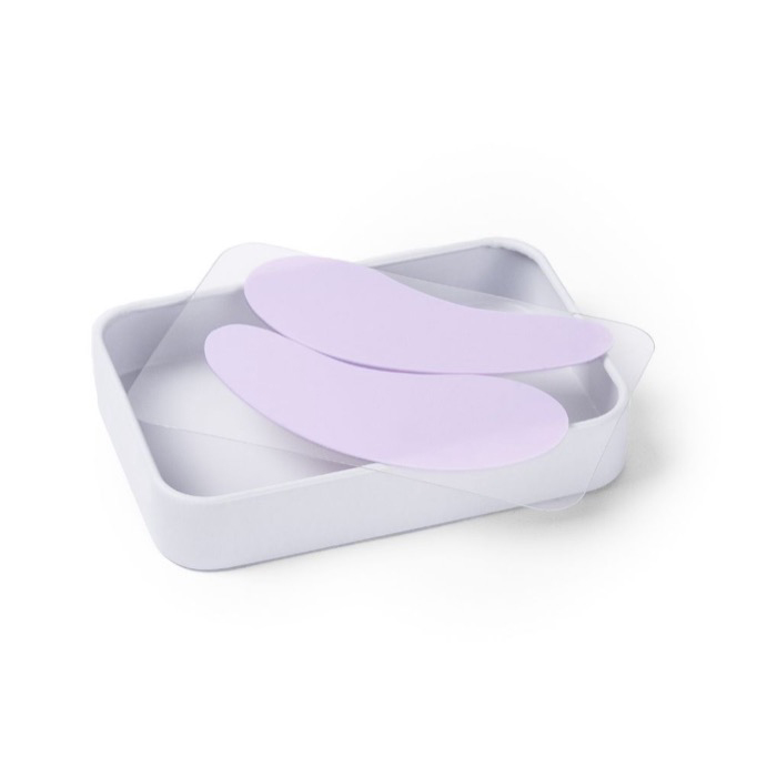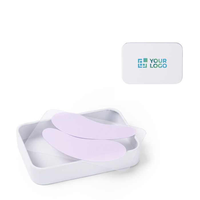 Set di patch per occhi riutilizzabili in silicone, presentati in un’elegante scatola personalizzabile.