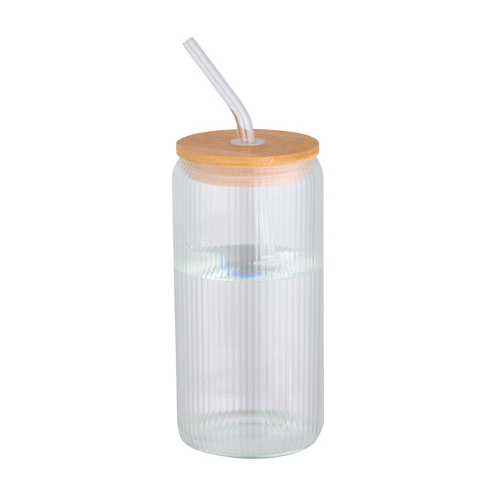 Caraffa in vetro borosilicato con cannuccia in vetro e tappo in bambù, pensata per l’uso quotidiano in ufficio o come regalo aziendale. L’interno rigato aggiunge un dettaglio distintivo senza complicare la pulizia, mentre l’esterno liscio offre una superficie comoda da personalizzare con il logo. Il tappo aiuta a proteggere la bevanda durante le riunioni o sulla scrivania. Viene consegnata in una confezione regalo in cartone riciclato, pronta per la distribuzione in iniziative interne o eventi di brand.
