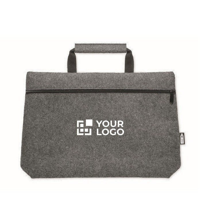 Cartella in feltro RPET con scomparto principale con cerniera e tasca interna. Può contenere un computer portatile da 15 pollici.
