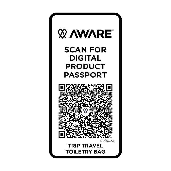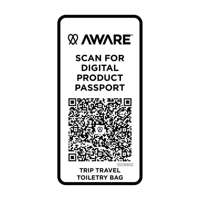 Il beauty case da viaggio in materiale riciclato è compatto e strutturato progettato per mantenere in ordine gli oggetti personali durante i viaggi. Realizzato in twill di poliestere 290D con pannello posteriore tessuto a maglia e foderato in PET riciclato 210D/PU, presenta un design lineare con pratici scomparti. Lo scomparto principale comprende una tasca interna con zip per gli oggetti più piccoli, mentre lo scomparto inferiore a conchiglia tiene separati gli oggetti essenziali per un accesso più facile ed una migliore organizzazione. Ogni borsa è inoltre dotata di un sistema di tracciamento Aware™. Questa funzione innovativa consente agli utenti di tracciare le origini e il percorso del loro articolo attraverso un codice QR, migliorando la trasparenza della catena di approvvigionamento e promuovendo un legame più forte tra il prodotto e il relativo processo di produzione. Capacità: 6 litri.