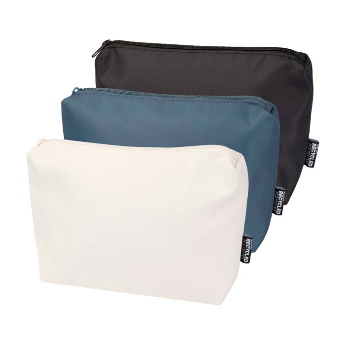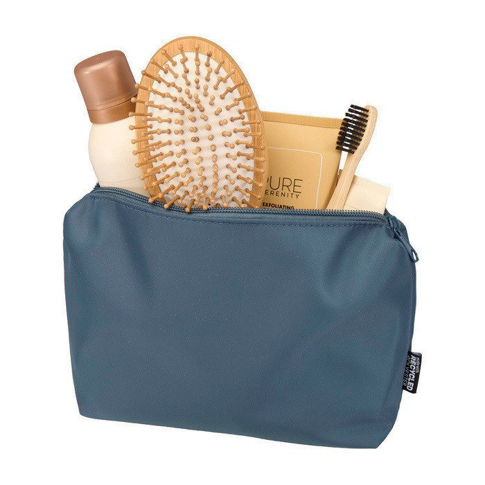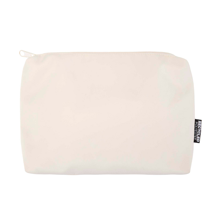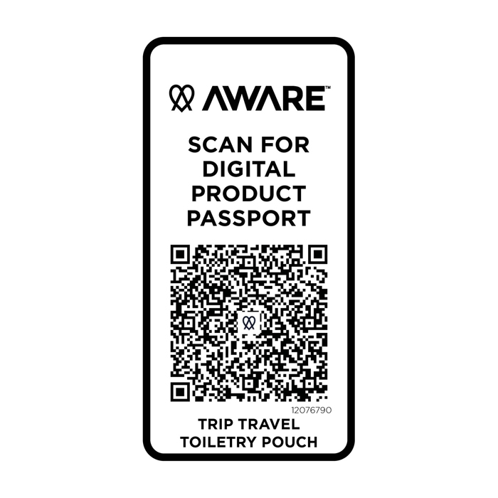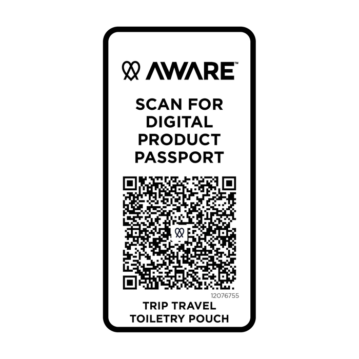 La trousse da viaggio in materiale riciclato è una soluzione compatta e semplice per trasportare gli oggetti di uso quotidiano. Realizzata in twill di poliestere 290D con pannello posteriore tessuto in maglia e foderata in PET riciclato 210D/PU, presenta un design lineare e minimalista. Lo scomparto principale offre spazio per articoli da toeletta o piccoli oggetti, rendendolo ideale per viaggi brevi o per rimanere organizzati durante gli spostamenti. Ogni borsa è inoltre dotata di un sistema di tracciamento Aware™. Questa funzione innovativa consente agli utenti di tracciare le origini ed il percorso del loro articolo attraverso un codice QR, migliorando la trasparenza della catena di approvvigionamento e promuovendo un legame più forte tra il prodotto e il relativo processo di produzione. Capacità: 2 litri.