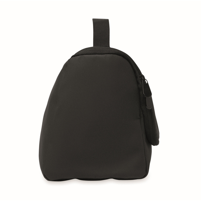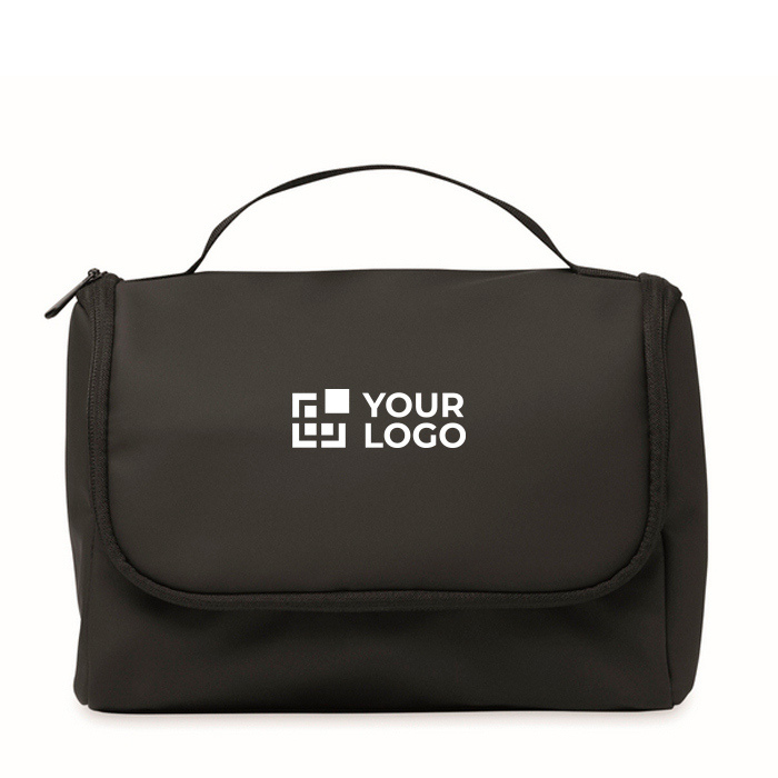 Beauty case pubblicitario con gancio per essere appeso e dotato di tasche in rete. Mantiene tutto in ordine rafforzando la tua identità aziendale.