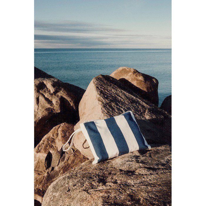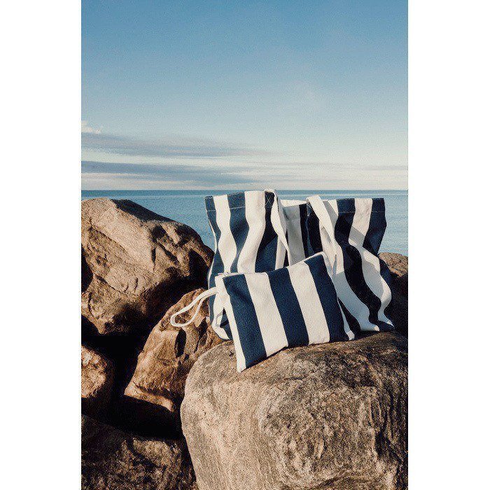 Borsa organizer in tela da 390 g/m² con stampa a righe bicolore, pensata per tenere accessori e oggetti personali ben ordinati. Include una chiusura con zip per riporre tutto in modo sicuro e un pratico manico che facilita il trasporto nella vita di tutti i giorni o durante gli spostamenti. Realizzata con 69% cotone riciclato e 29% poliestere riciclato, con certificazione GRS (Global Recycled Standard), che verifica la catena di fornitura dei materiali riciclati. Utile come regalo aziendale per eventi, viaggi di lavoro o attività di brand.