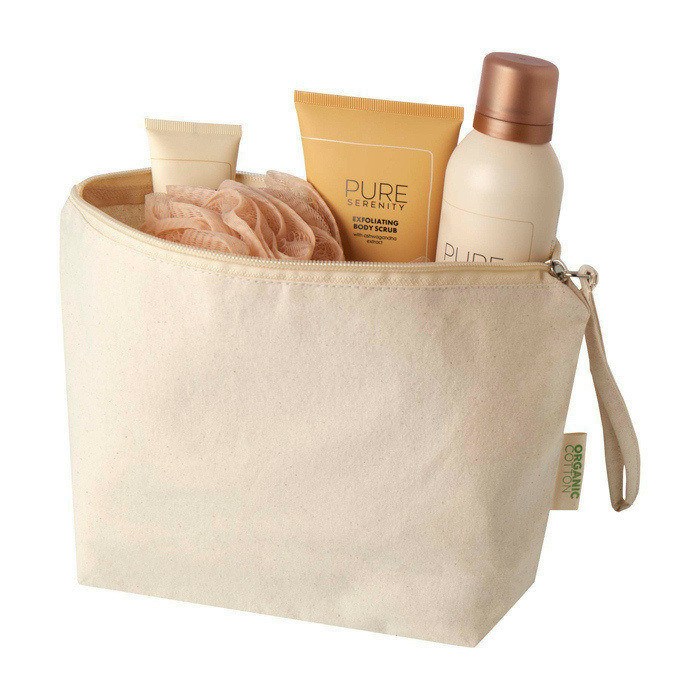Necessaire grande in cotone biologico con zip e laccetto 3L 180g/m2