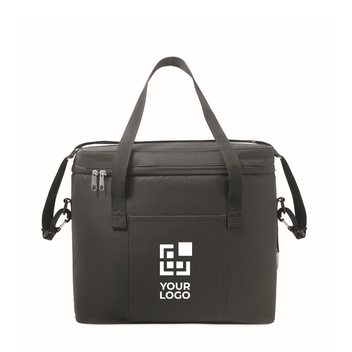 Borsa frigo in 600D RPET con rivestimento in PU, pensata per trasportare cibi e bevande mantenendo la temperatura. Include una fodera isolante in PEVA con schiuma in PE da 6 mm per migliorare l’isolamento. Dispone di 1 tasca frontale per accessori e 1 tasca interna in rete per organizzare meglio il contenuto. Include 2 manici e 1 tracolla regolabile per portarla comodamente in movimento. Capacità di 18 L, utile per la spiaggia o per kit evento.