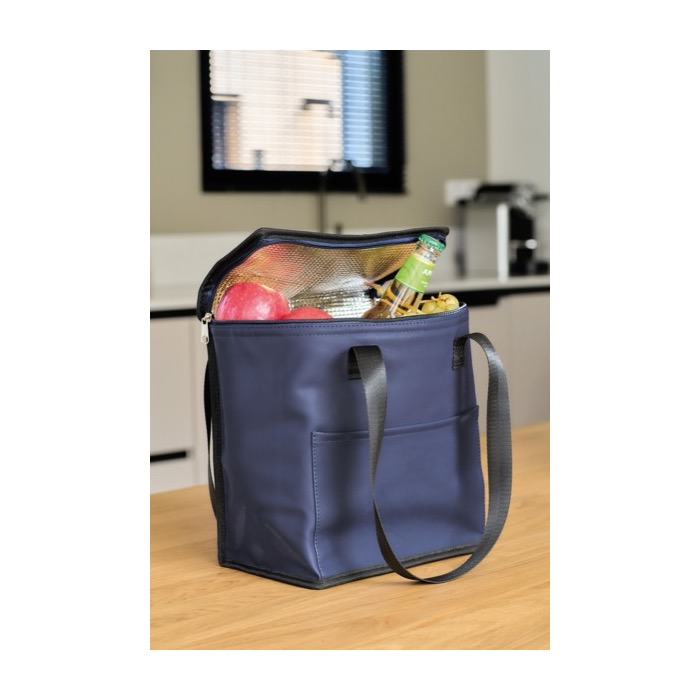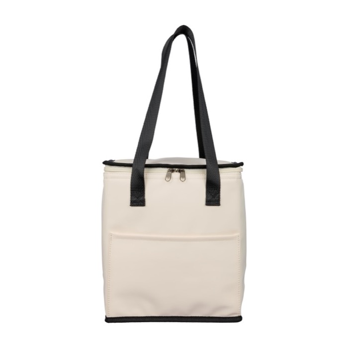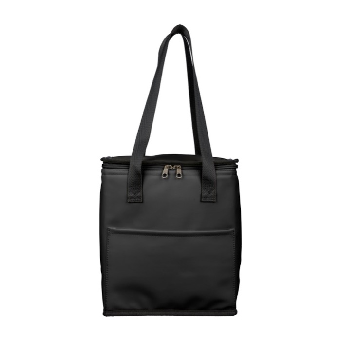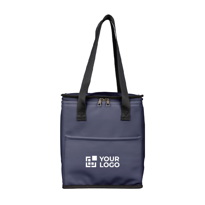 Borsa termica con manici lunghi e tasca frontale. La soluzione ideale per organizzare pasti e bevande in ufficio o agli eventi, dando spazio al tuo brand.