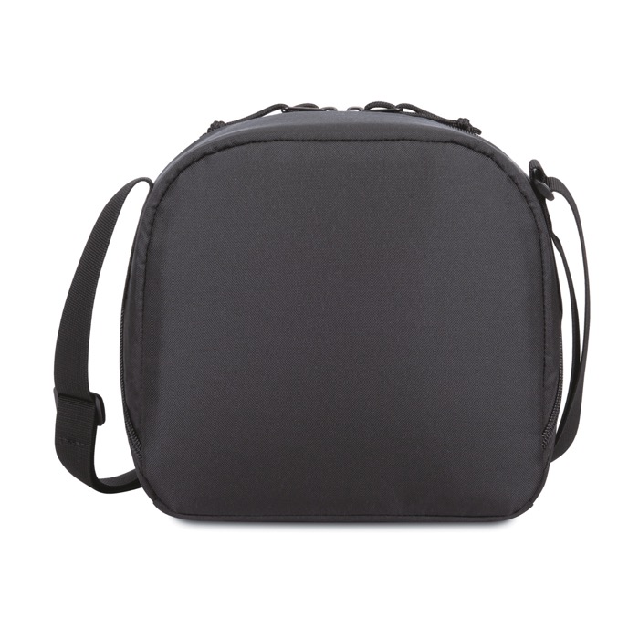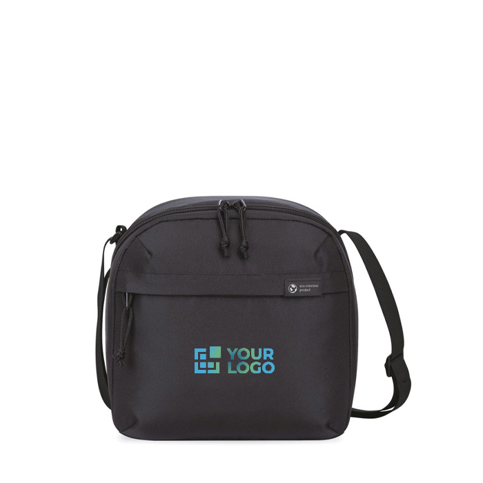 Una versione moderna e sostenibile di un classico porta pranzo, realizzato con tessuto e cinghie ricavati da bottiglie di plastica riciclate. Tasca frontale con cerniera per riporre gli accessori. Scomparto principale iolato con doppia cerniera e apertura obliqua. Tracolla universale regolabile. Può contenere 9 lattine.