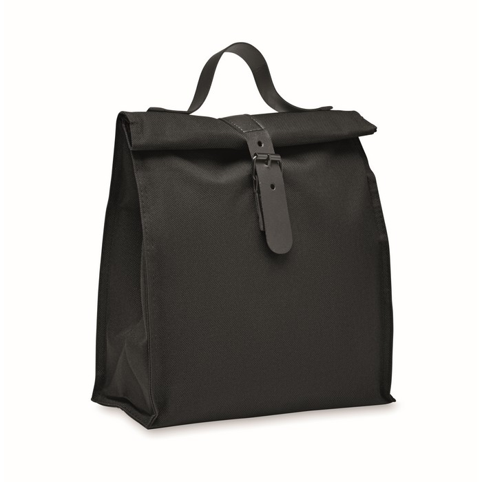 Borsa termica rolltop in poliestere con manico e chiusura in pelle