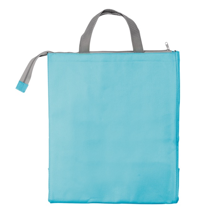 Borsa termica in tessuto non tessuto 100g/m² ed interno in schiuma EPE, con cerniera e manici resistenti lunghi 28,5 cm e spessi 2,5cm. Supporta un massimo di 8kg.