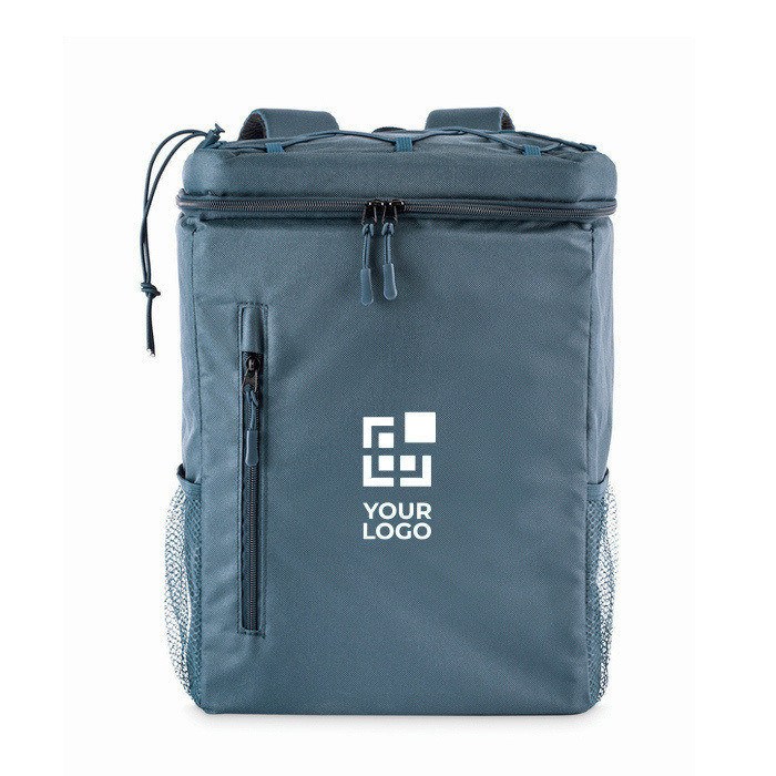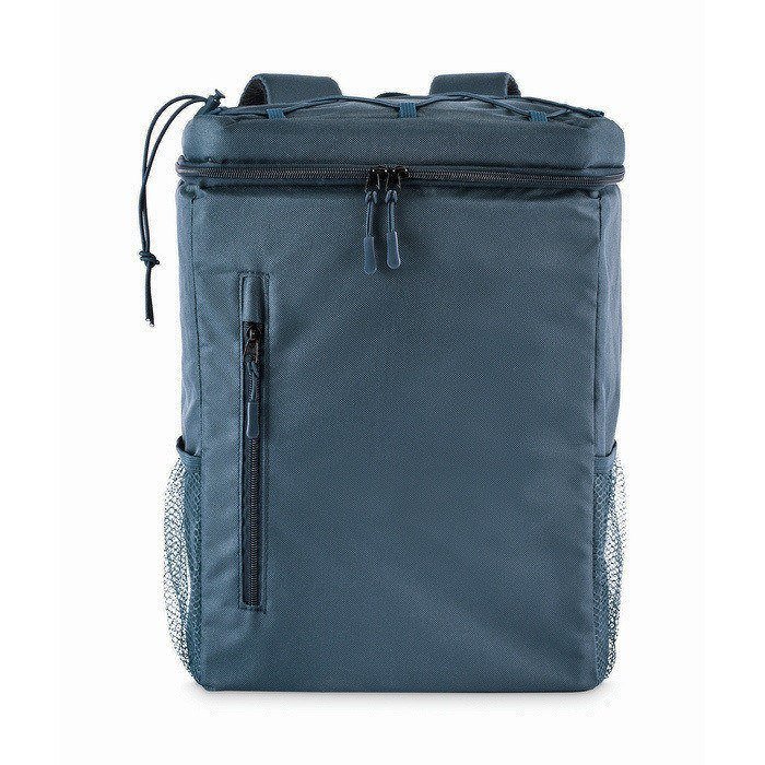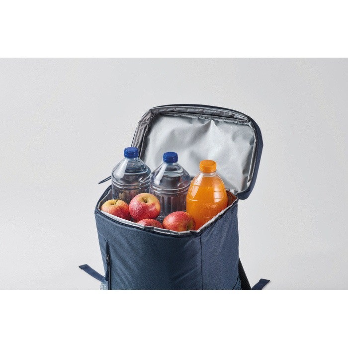 Zaino frigo in poliestere RPET 600D con interno isolante per trasportare cibo e bevande in modo ordinato. Include fodera in PEVA e schiuma PE da 5 mm per mantenere la temperatura durante il tragitto. Gli spallacci regolabili imbottiti garantiscono un utilizzo confortevole durante gli spostamenti. Include tasca frontale e due tasche laterali in rete per accessori. Consigliato per eventi aziendali, team sul campo o welcome pack.
