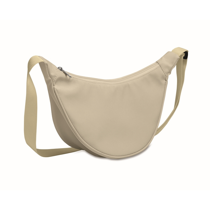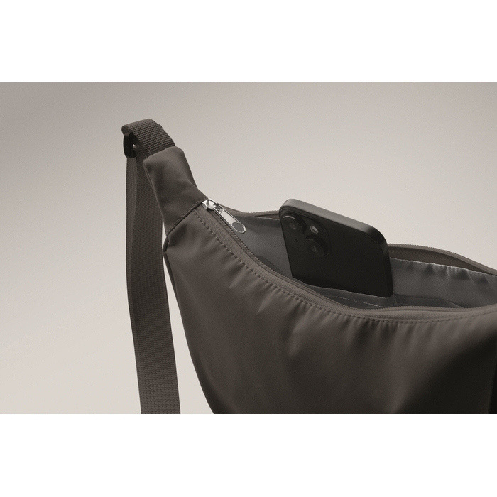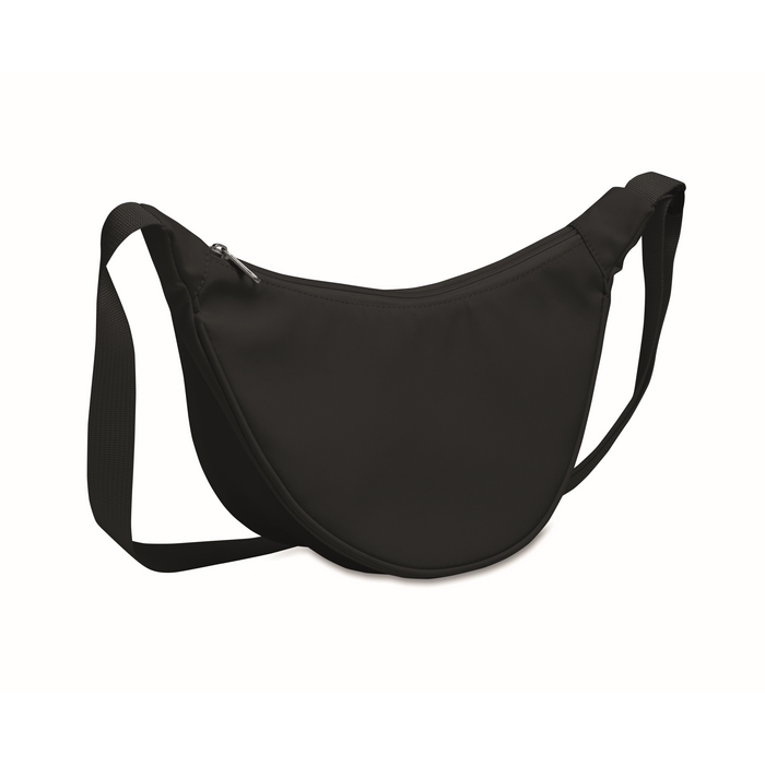 Borsa a tracolla a mezzaluna o crossbody in Oxford 400D con fodera in RPET 210D. Un comparto principale con zip e 2 tasche interne.