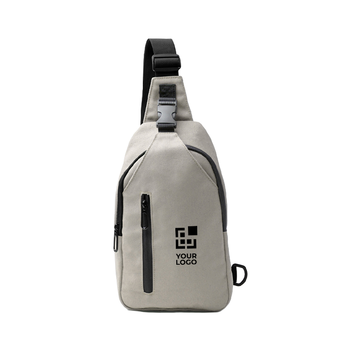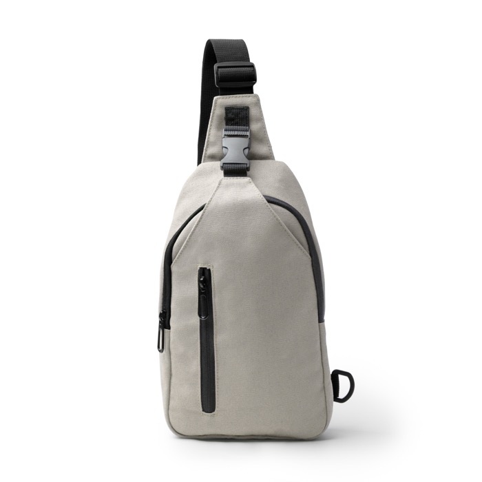 Borsa a tracolla in canvas di cotone riciclato pensata per la vita di tutti i giorni in movimento. Include una tracolla regolabile con moschettone e due punti di ancoraggio alle estremità per portarla con maggiore stabilità. Lo scomparto principale con chiusura a zip aiuta a mantenere il contenuto al sicuro, mentre le due tasche esterne permettono di separare gli accessori: una con zip e l’altra con fibbia. La parte posteriore imbottita migliora il comfort durante i tragitti lunghi. Utile per azioni di benvenuto, eventi e dotazione del personale.