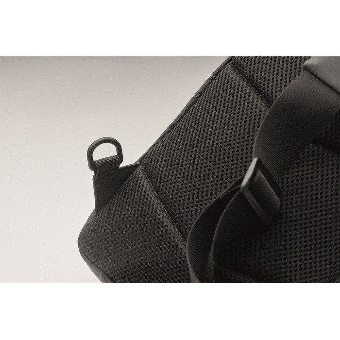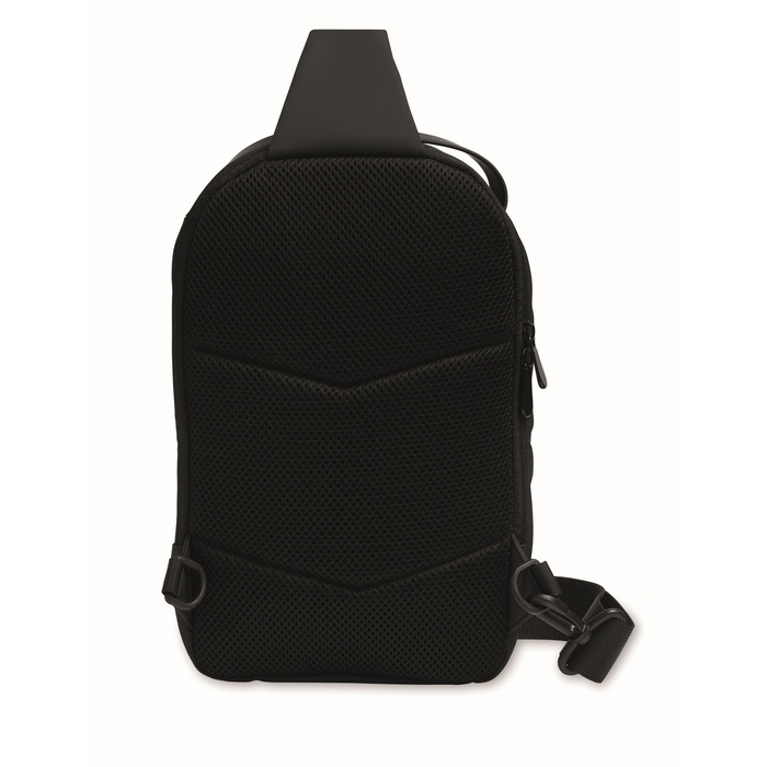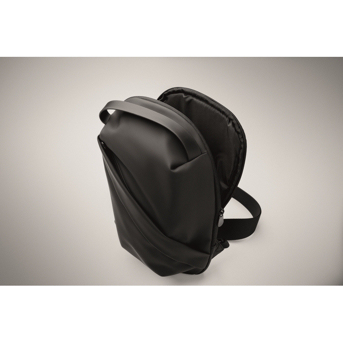Borsa a tracolla in PU morbido con retro imbottito e fodera in RPET 210D. Ampio scomparto principale con tasca frontale con chiusura a zip.