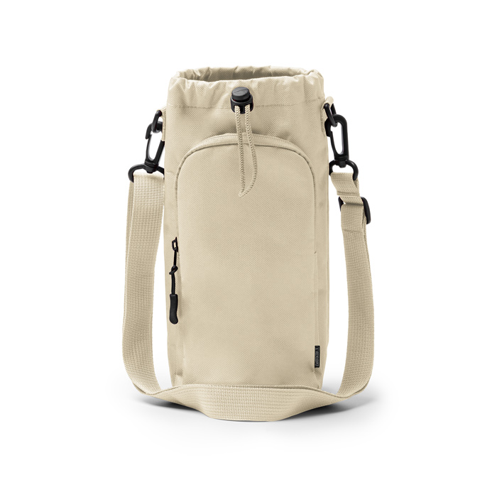 Borsa a tracolla portabottiglie in plastica riciclata 600D, pensata per trasportare contenitori fino a 2 L in modo comodo. Include una chiusura con cordino regolabile per fissare il contenuto e una tasca esterna ad ampia apertura con cerniera, utile per chiavi, telefono o badge. La tracolla regolabile con rinforzi migliora il trasporto e può essere rimossa grazie al moschettone integrato. L’interno è foderato per aumentare la resistenza nell’uso quotidiano. Una scelta pratica per attività di branding in eventi, team commerciali o iniziative aziendali.