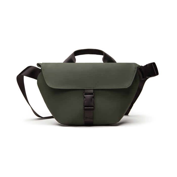 Borsa a tracolla in poliestere riciclato impermeabile con varie tasche