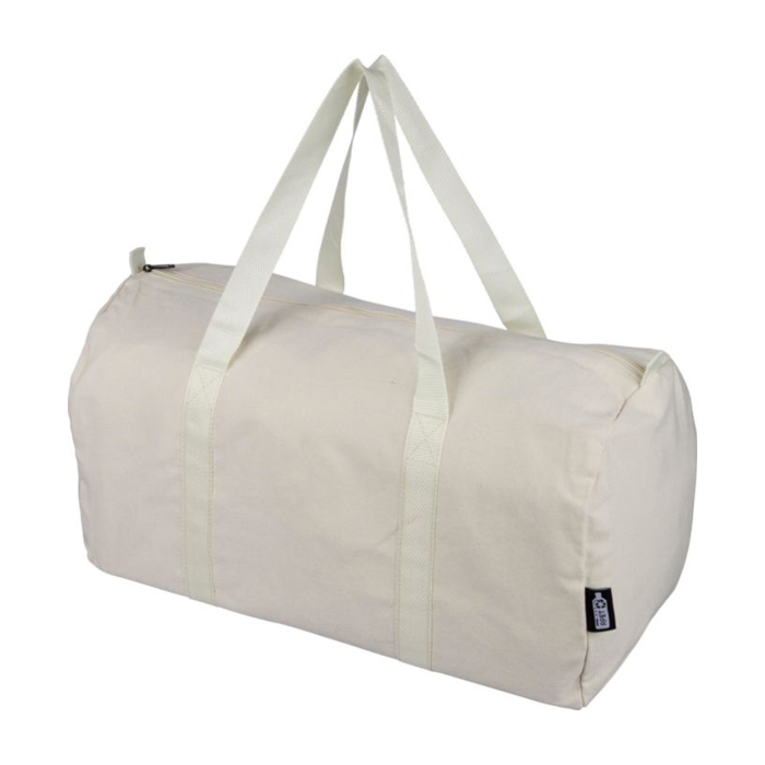 Borsa sportiva o da viaggio in poly-cotone riciclato da 330 g/m², pensata per spostamenti e uso quotidiano. Integra un ampio scomparto superiore con zip per mantenere il contenuto protetto e accessibile. Include manici lunghi da 100 cm e larghi 3 cm, oltre alla zip coordinata per portarla comodamente a spalla o a mano. Con capacità approssimativa di 30 litri, aiuta a organizzare indumenti, calzature o materiale di lavoro. Raccomandata per azioni di benvenuto, eventi e dotazione interna con logo.