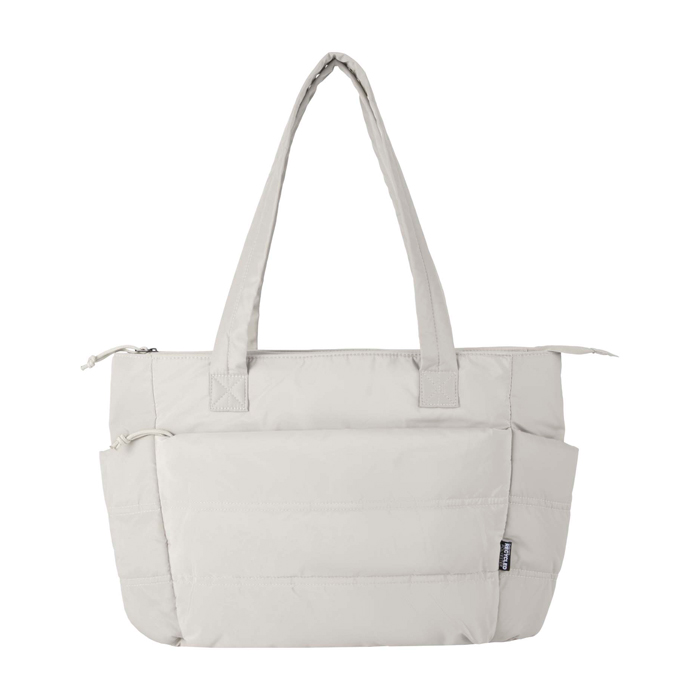 Borsa tote in materiali riciclati con certificazione GRS (Global Recycled Standard), pensata per la quotidianità professionale con organizzazione e protezione. Integra una custodia imbottita per laptop fino a 15,6” e combina tasche interne ed esterne per portare quaderni, caricabatterie, borraccia e altri essenziali senza perdere l’ordine. I manici lunghi imbottiti migliorano la presa e la fascia posteriore consente di fissarla a una valigia durante gli spostamenti. Leggera e idrorepellente, è ideale per congressi, onboarding e uso aziendale con logo.