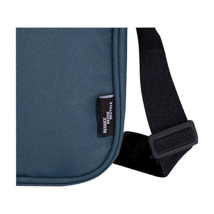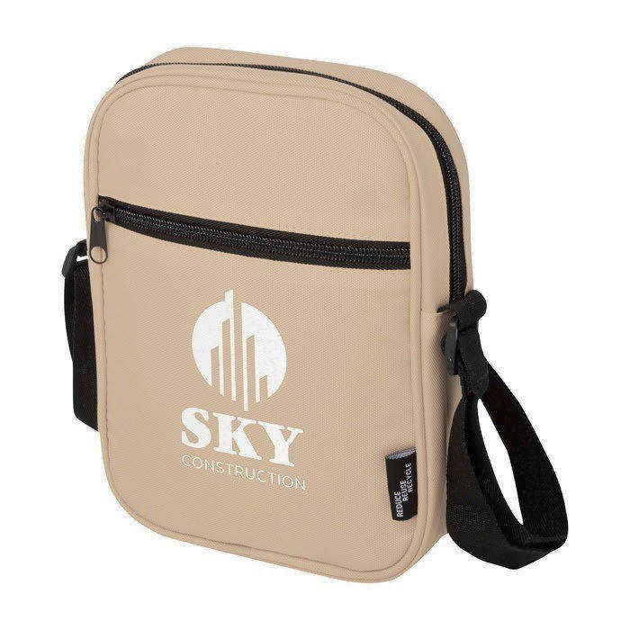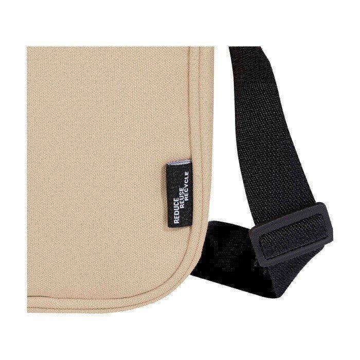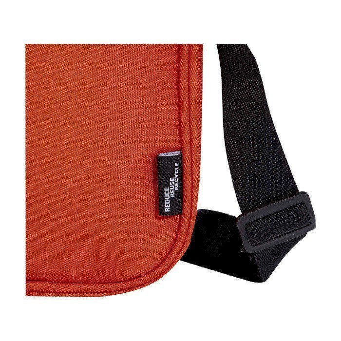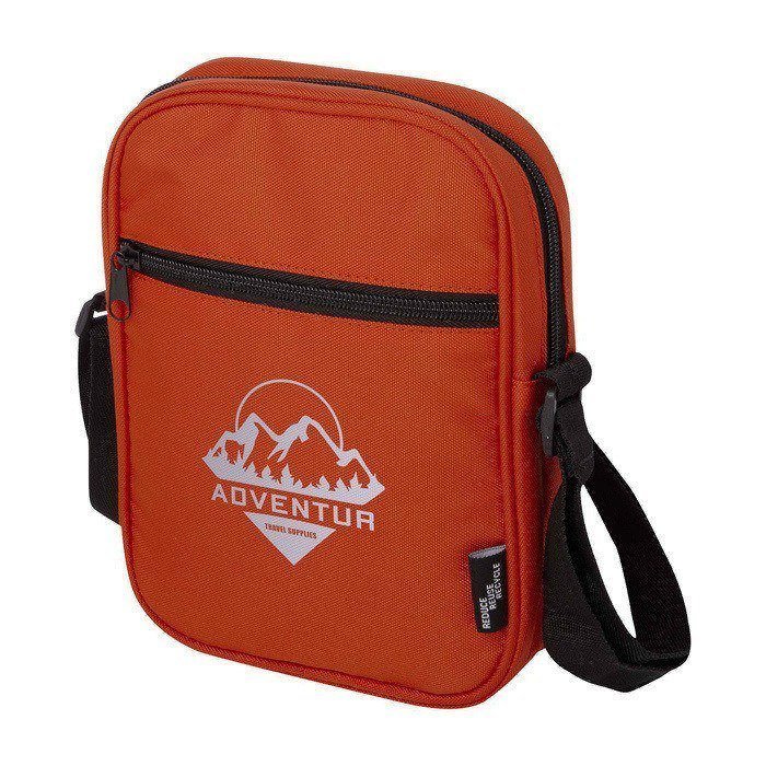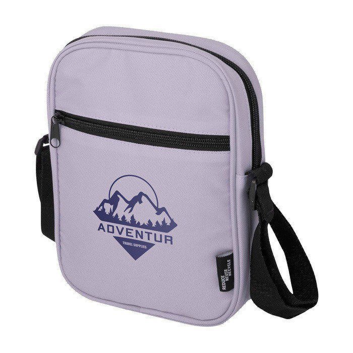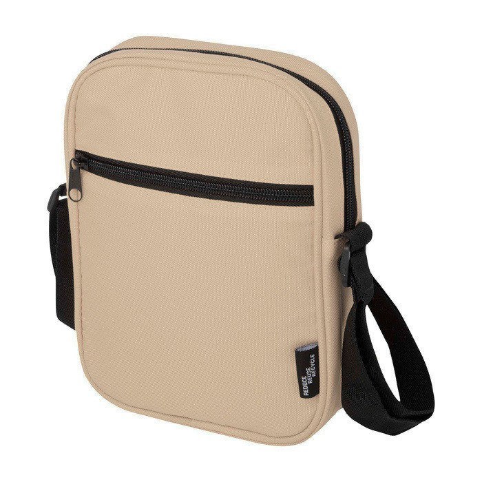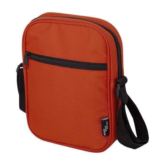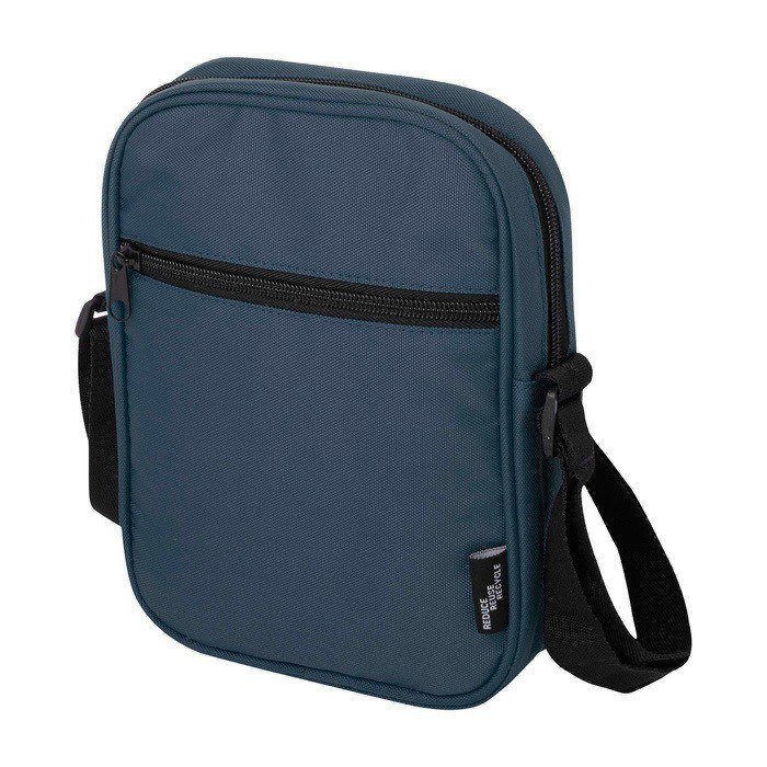 Borsa a tracolla pratica e idrorepellente realizzata in poliestere riciclato certificato GRS. Presenta uno scomparto con cerniera e una tasca interna per tenere al sicuro i dispositivi di uso quotidiano, una tasca anteriore con cerniera per le chiavi e gli accessori di valore e una tasca aperta sul retro per riporre gli oggetti e accedervi rapidamente. Grazie alla tracolla regolabile di alta qualità, è perfetta per l'uso quotidiano con un impatto ambientale minimo. Senza PVC. Capacità: 2litri.