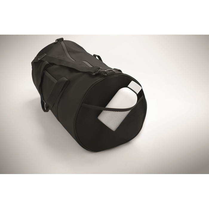Borsa da viaggio in poliestere RPET 600D con rivestimento PU. Tasca frontale con zip. Fodera interna in poliestere RPET 210D. 1 scomparto laterale con zip e 1 scomparto laterale in rete. Tasca interna con zip.
