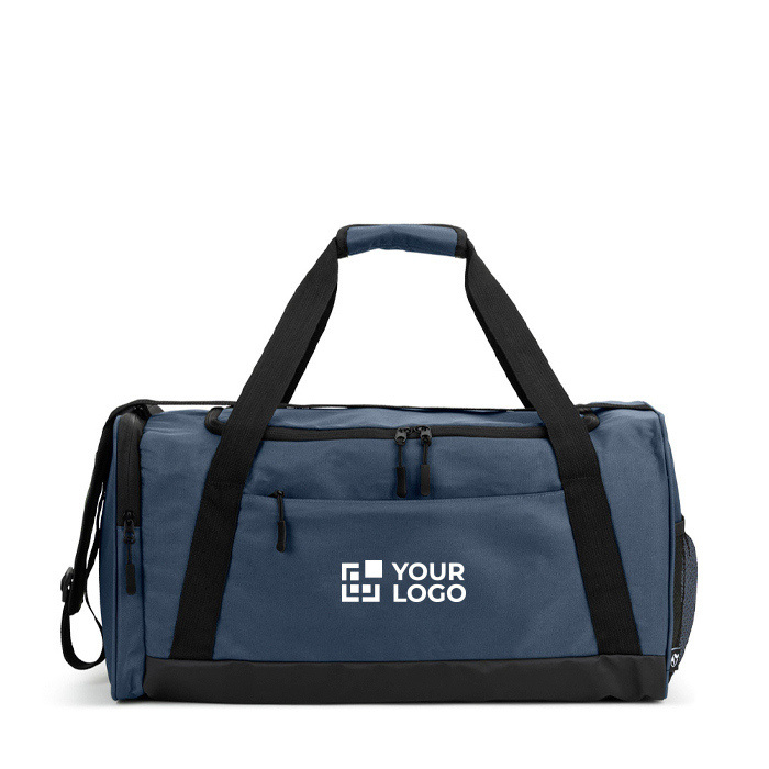Borsa sportiva in poliestere riciclato 600D ad alta densità, pensata per trasportare attrezzatura e documenti in modo ordinato. Include un ampio scomparto principale e una tasca interna con cerniera per riporre piccoli oggetti personali con maggiore controllo. All’esterno aggiunge una tasca frontale con cerniera e due tasche laterali, una con cerniera e l’altra in rete, utili per accessi rapidi. La tracolla regolabile incorpora un rinforzo imbottito per un utilizzo prolungato. Consigliata per welcome kit, eventi o attività di team.