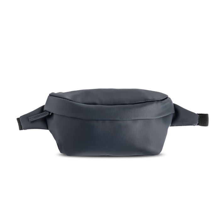 Marsupio realizzato in plastica riciclata con rivestimento in similpelle, pensato per un uso quotidiano comodo e leggero. Offre protezione dagli schizzi e uno scomparto principale con chiusura per tenere al sicuro i tuoi oggetti personali. Include anche una tasca frontale che aiuta a separare ciò di cui hai bisogno a portata di mano, come chiavi o carte. La cintura regolabile permette di adattarlo a diverse circonferenze e di indossarlo in vita o a tracolla. Opzione pratica per attività di brand in eventi e iniziative all’aperto.