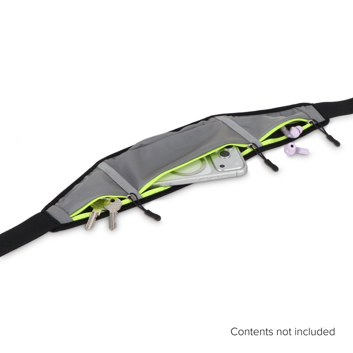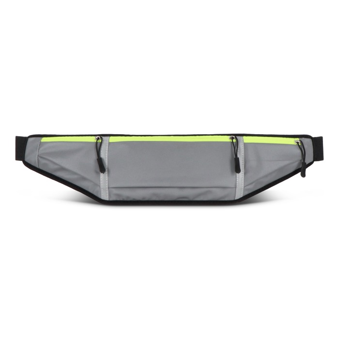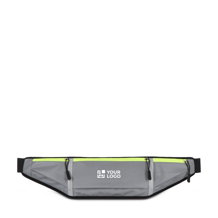 Marsupio riflettente con tre tasche e chiusura a zip. Il tuo logo accompagna gare ed eventi, mentre i partecipanti portano telefono e chiavi senza fastidi.