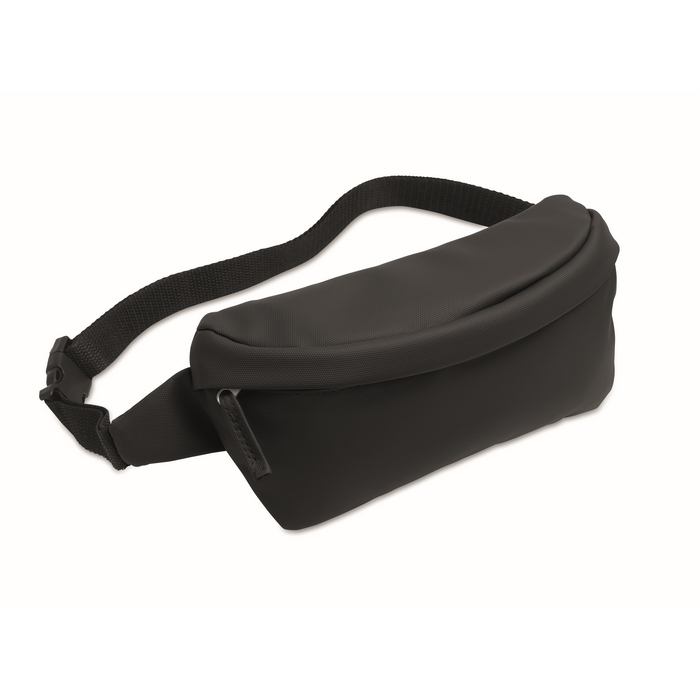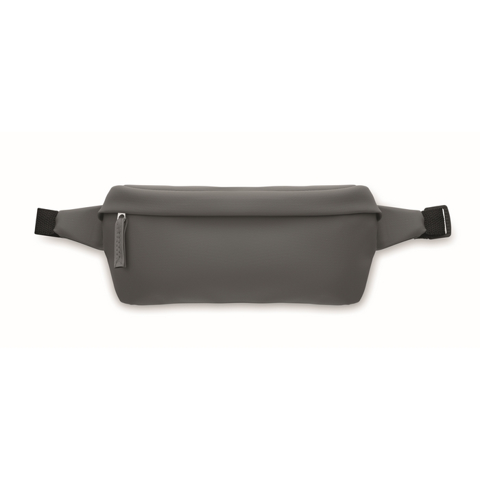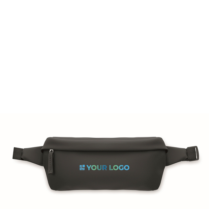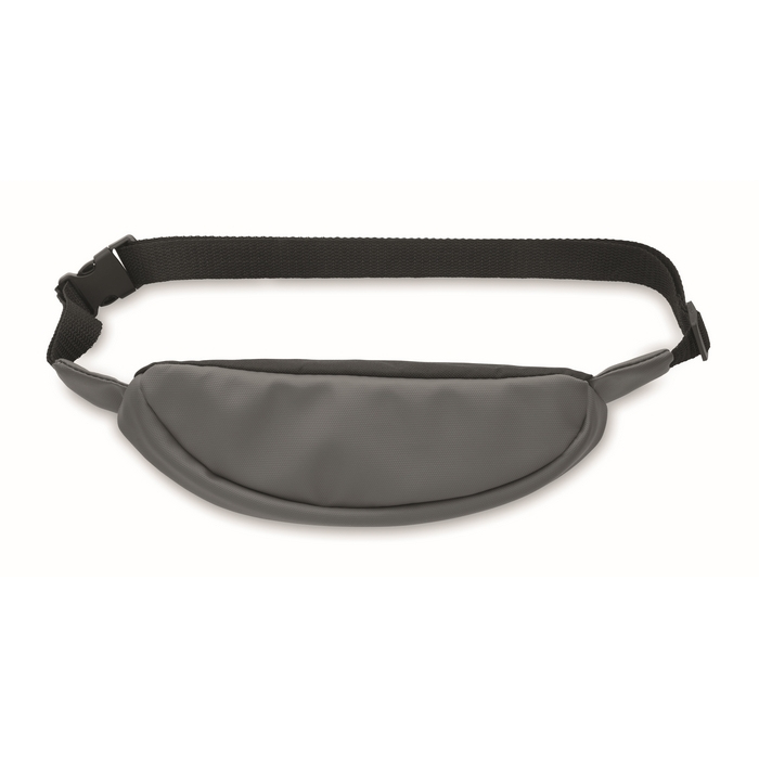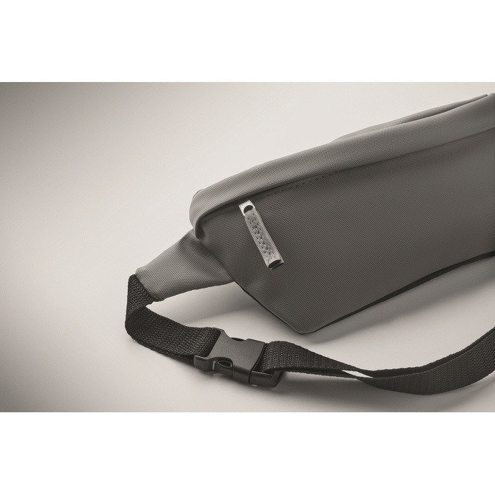 Valorizza la tua immagine con questo marsupio in RPET 600D rivestito in PU, con fodera interna e tasca frontale, perfetto per festival e concerti.