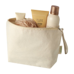Pochette realizzata in cotone biologico indiano certificato GOTS e Oeko-Tex da 180 g/m². Dotata di un ampio scomparto con cerniera e di un laccetto per portarla facilmente con sé. Capacità: 3 litro.