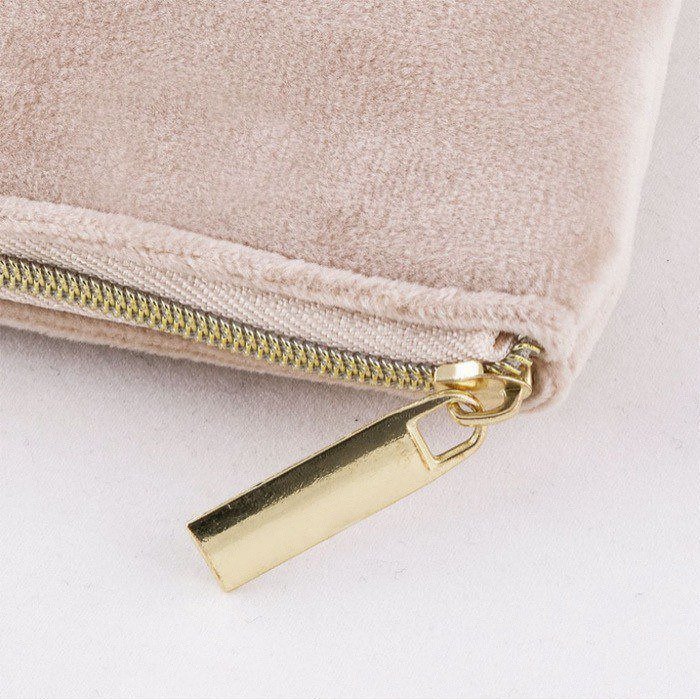 Pochette realizzata in tessuto di velluto da 280 g/m² con cerniera e tiretto dorati. Interno morbido. PVC free.