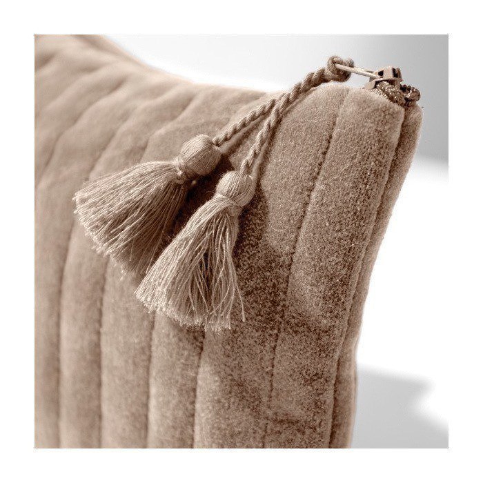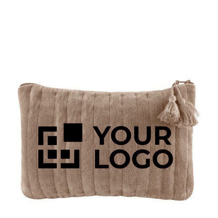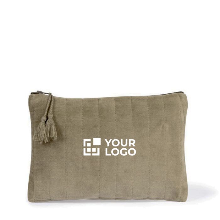 Pochette in cotone e poliestere da 325 gr/m², di forma piatta con finitura vellutata e linee sottili di cuciture decorative.