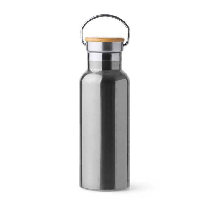 Borraccia in acciaio inox a doppia parete con tappo in bambù che ti farà distinguere in qualsiasi ambiente professionale. Adatta alla sublimazione.