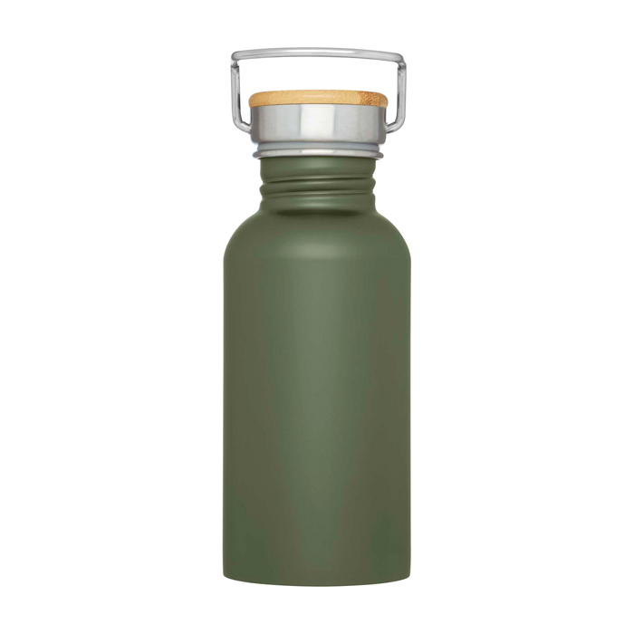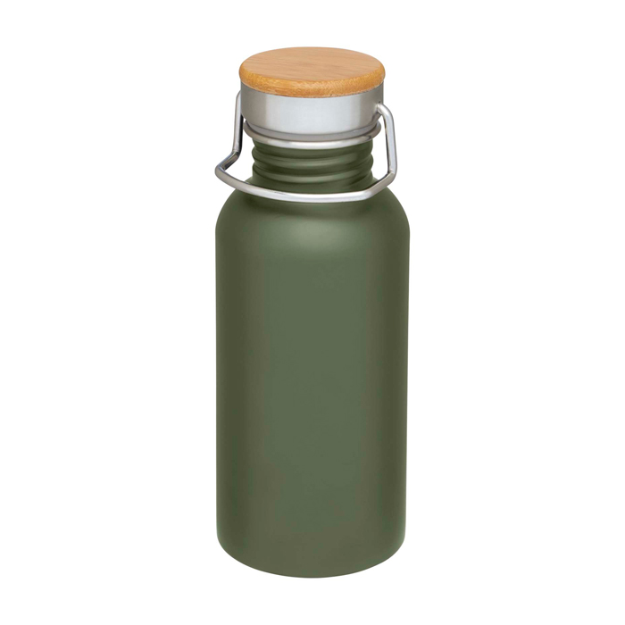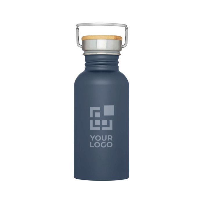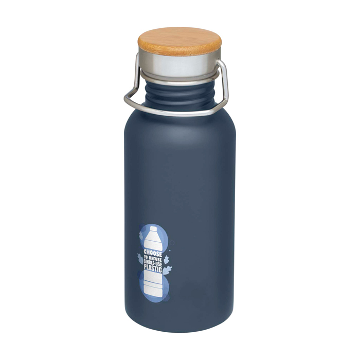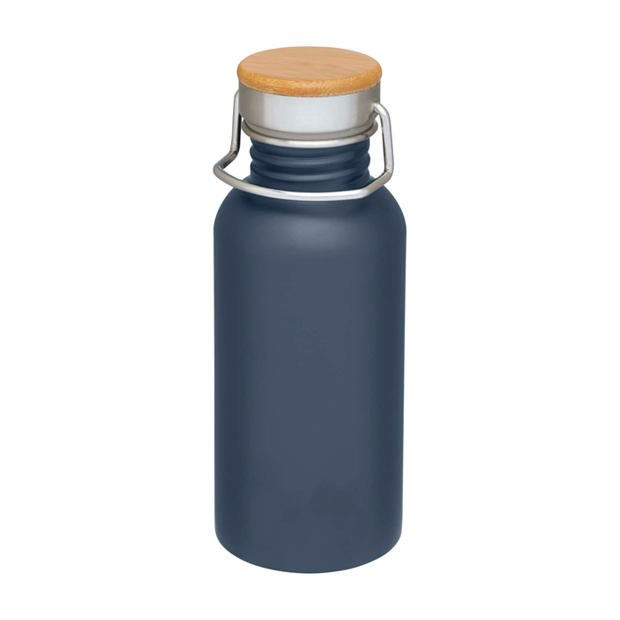 Distinguiti in ogni meeting o evento aziendale con questa borraccia in acciaio inox con tappo in bambù e manico, ideale da portare comodamente ovunque.