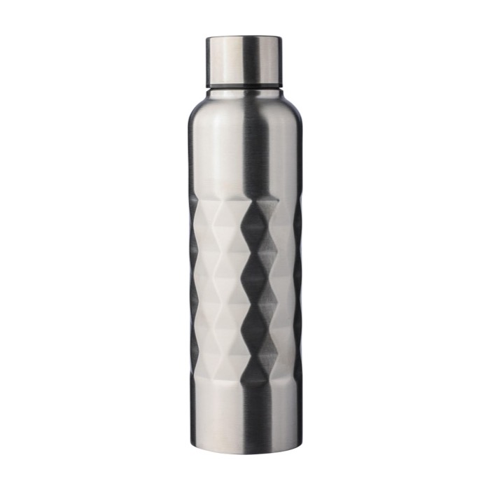 Borraccia in acciaio inox riciclato con texture a rilievo a forma di diamante sul corpo. Regalo personalizzabile con tappo a vite e capacità 800 ml.