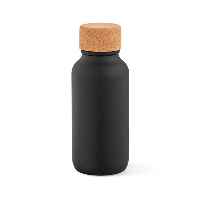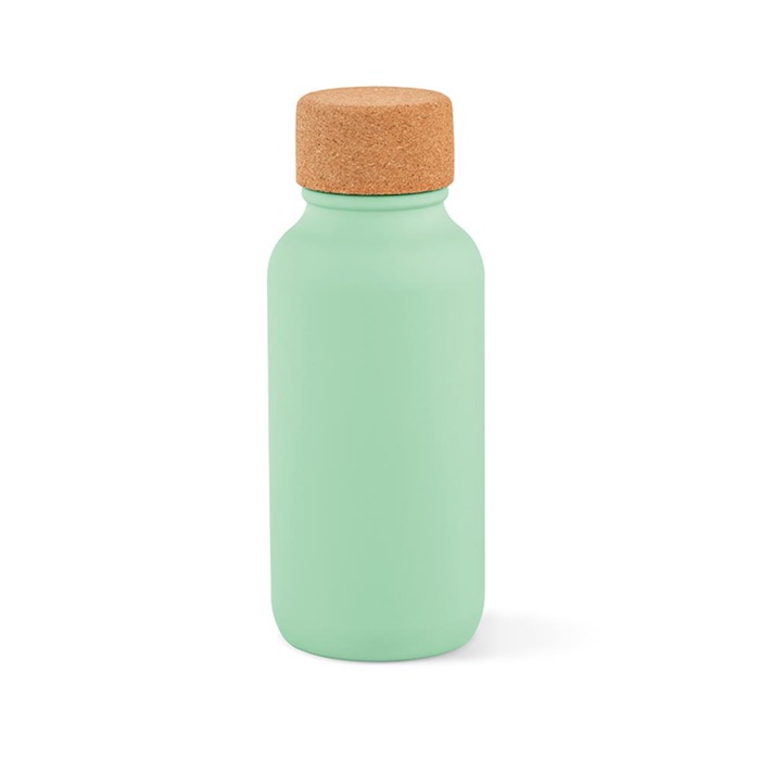 Borraccia in acciaio riciclato opaco con tappo in sughero ecologico.