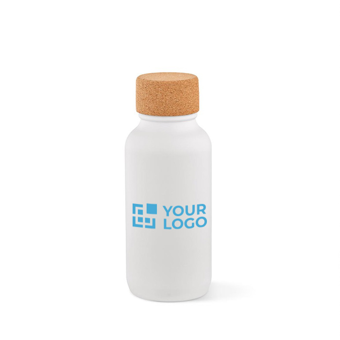 Eleganza ed ecologia si incontrano nel design di questa borraccia aziendale, che combina il tappo in sughero con il corpo in acciaio inox riciclato colorato.