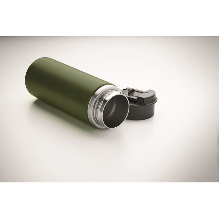 Borraccia a doppia parete in acciaio inox riciclato (90% riciclato e 10% acciaio inox), pensata per l’uso quotidiano in ufficio o in movimento. Include un tappo con beccuccio per bere con maniglia e cannuccia combinata per adattarsi a diverse modalità di consumo. La chiusura anti-perdita aiuta a evitare fuoriuscite in zaini o valigette. Capacità di 500 ml, pratica per mantenere un’idratazione costante durante la giornata. Opzione adatta per welcome pack, eventi interni e azioni di merchandising aziendale.