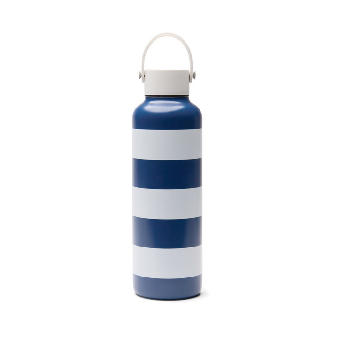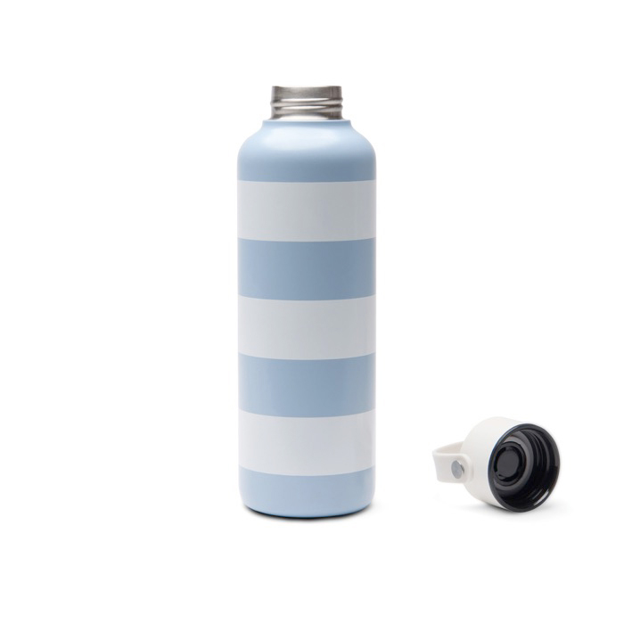 Borraccia termica in acciaio inox riciclato con certificazione RCS (Recycled Claim Standard), pensata per l’uso quotidiano in ufficio e negli spostamenti. La doppia parete sottovuoto aiuta a mantenere le bevande fredde fino a 12 ore e calde fino a 6 ore, riducendo le variazioni di temperatura durante la giornata. È dotata di chiusura antigoccia per evitare fuoriuscite in zaino o borsa e un manico in silicone bianco che facilita il trasporto. Finitura con stampa a righe bicolore. Consigliata per attività di branding in eventi e welcome pack aziendali.