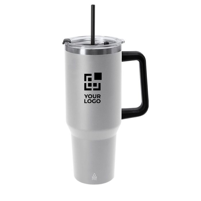 Tazza termica in acciaio inox riciclato con cannuccia e foro 1,2l