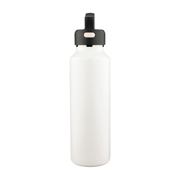 Bottiglia in acciaio inossidabile riciclato con doppia parete e capacità di 600 ml, pensata per un uso quotidiano intensivo in ufficio e negli spostamenti. Combina interno in acciaio inossidabile 304 ed esterno in acciaio inossidabile 201 per un buon equilibrio tra resistenza e finitura. Il tappo in plastica include un anello di trasporto e apertura con pulsanti laterali: si sblocca premendo entrambi e si chiude fino a sentire un clic per maggiore sicurezza. Viene consegnata in scatola individuale di cartone marrone, utile per azioni aziendali ed eventi.