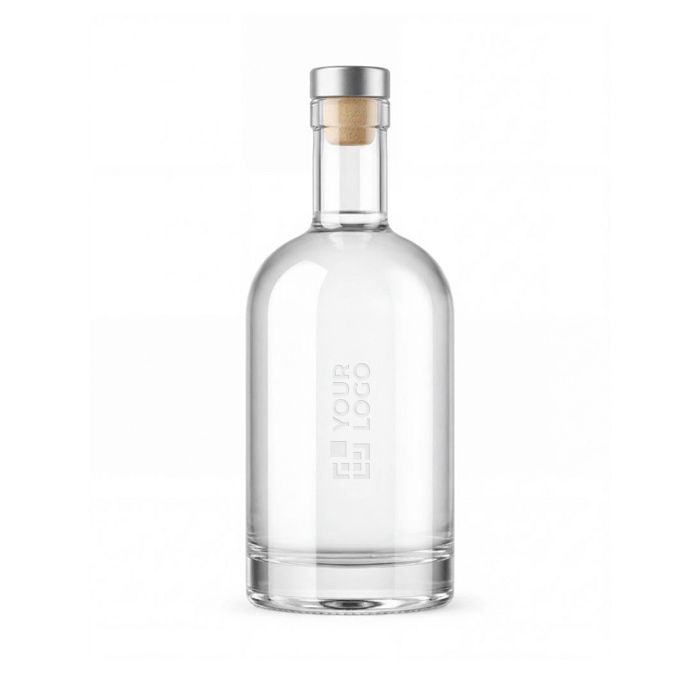 Elegante bottiglia di vetro personalizzata da 750ml con tappo.