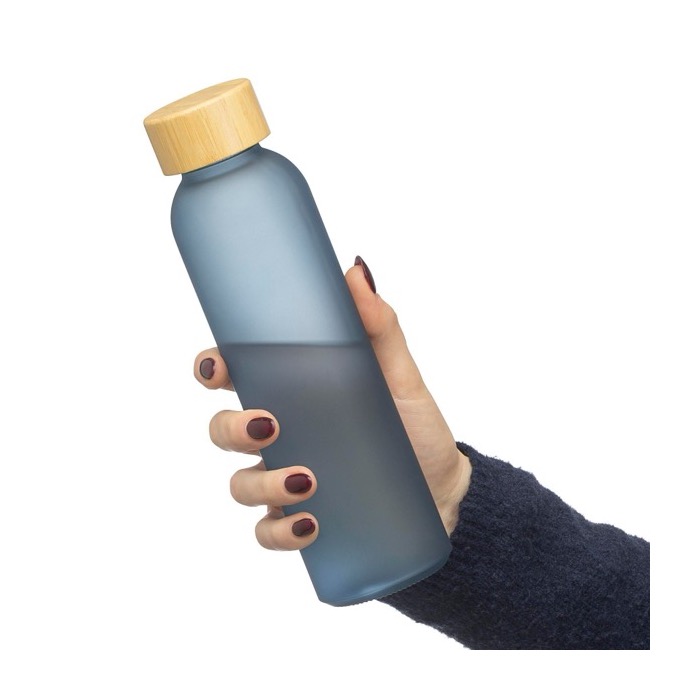 Borraccia in vetro sodico-calcico con corpo satinato e tappo a vite in bambù con interno in polipropilene (PP). Capacità 500 ml, ideale per bevande fredde e per l’uso quotidiano in ufficio, durante le riunioni o nelle aree reception. La finitura esterna migliora la presa e conferisce un design distintivo rispetto alle bottiglie standard. Viene fornita in una confezione singola in cartone avana, pronta per lo stoccaggio o la spedizione. Una soluzione pratica per attività di branding ed eventi, o come omaggio per i team aziendali.