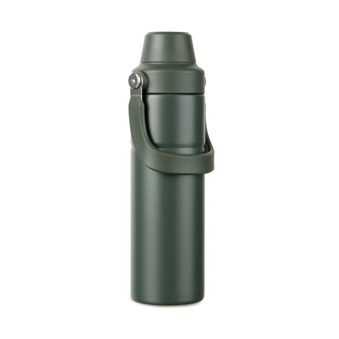 Borraccia termica sostenibile con manico, capacità 600ml, doppia apertura.