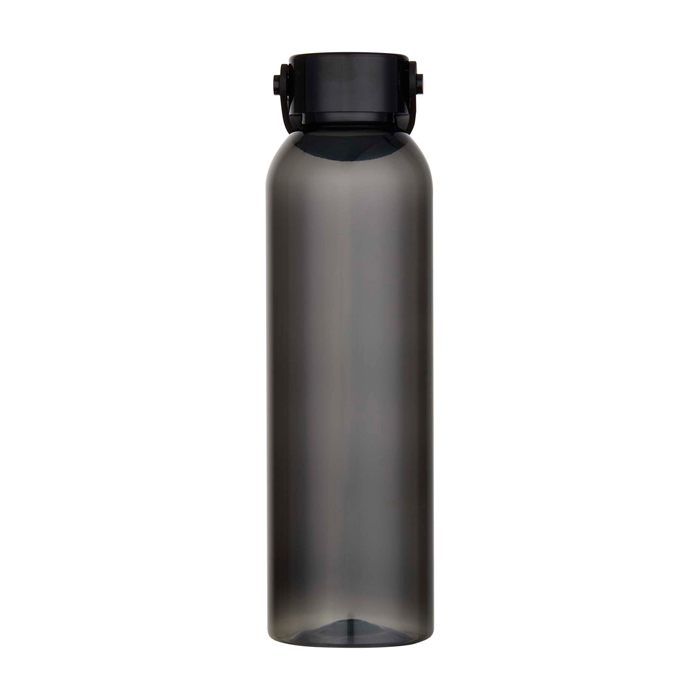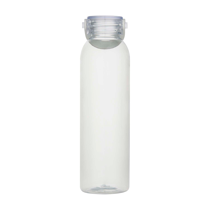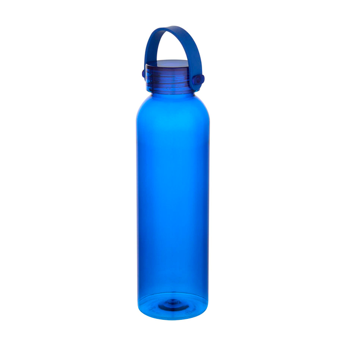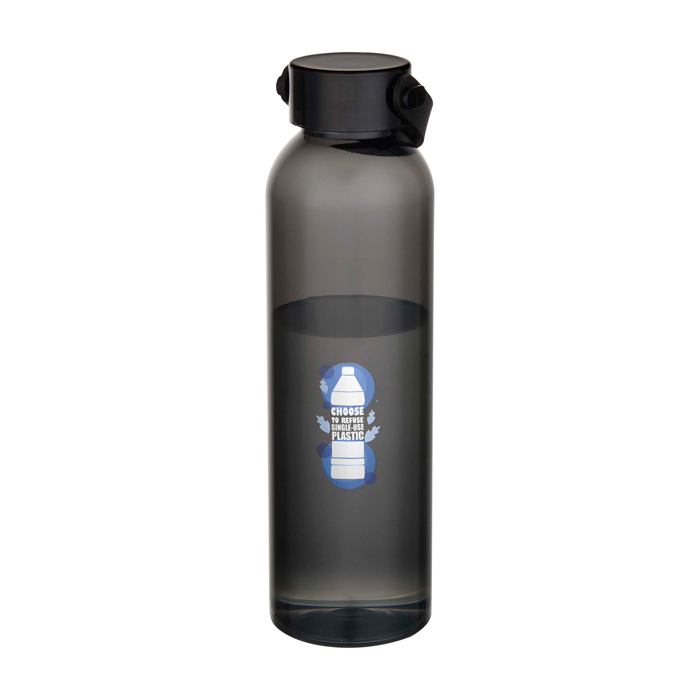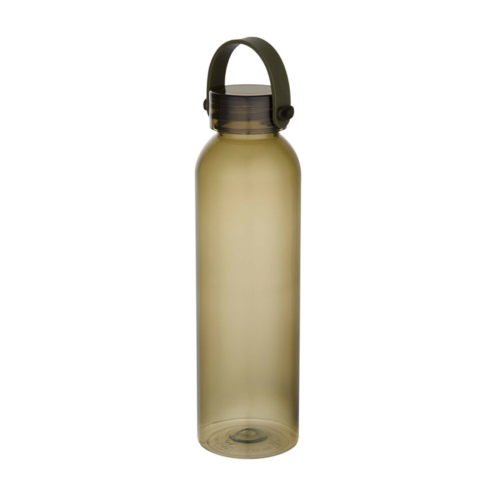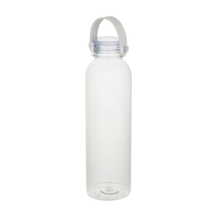 Borraccia realizzata in PET riciclato certificato RCS, dotata di un comodo manico in silicone per il trasporto. In conformità con il processo di riciclaggio del PET approvato dall'EFSA. Capacità: 630 ml.