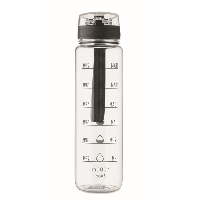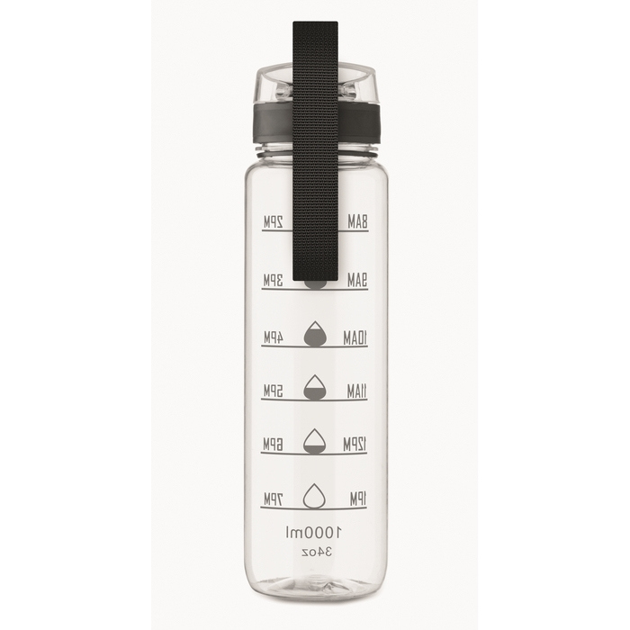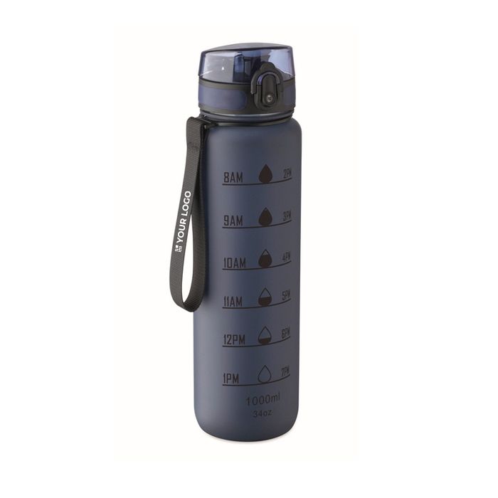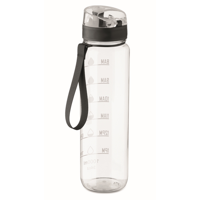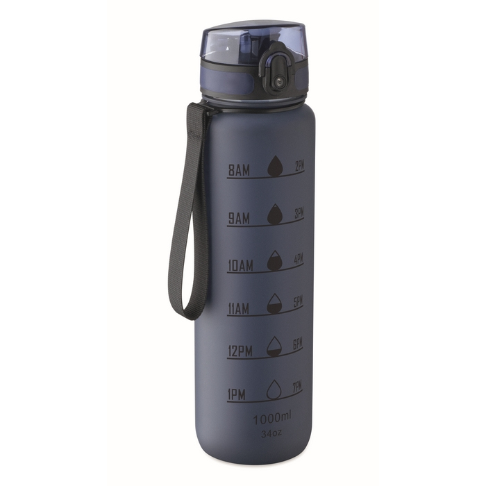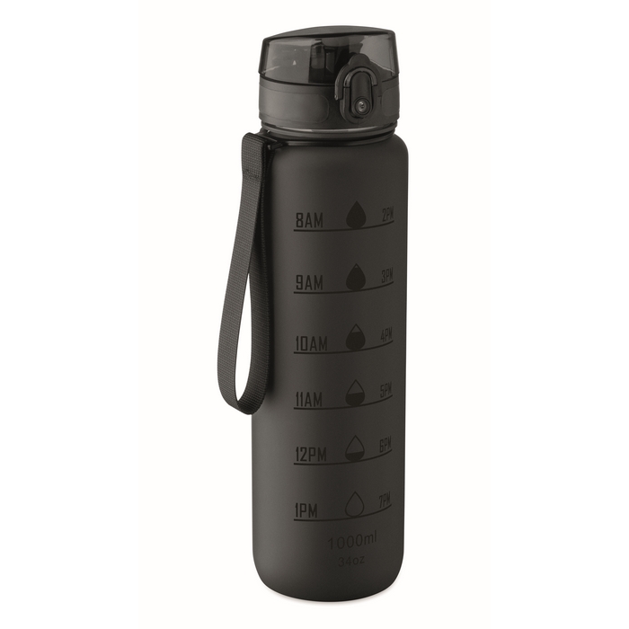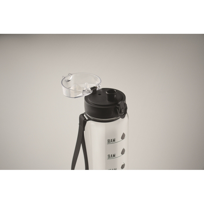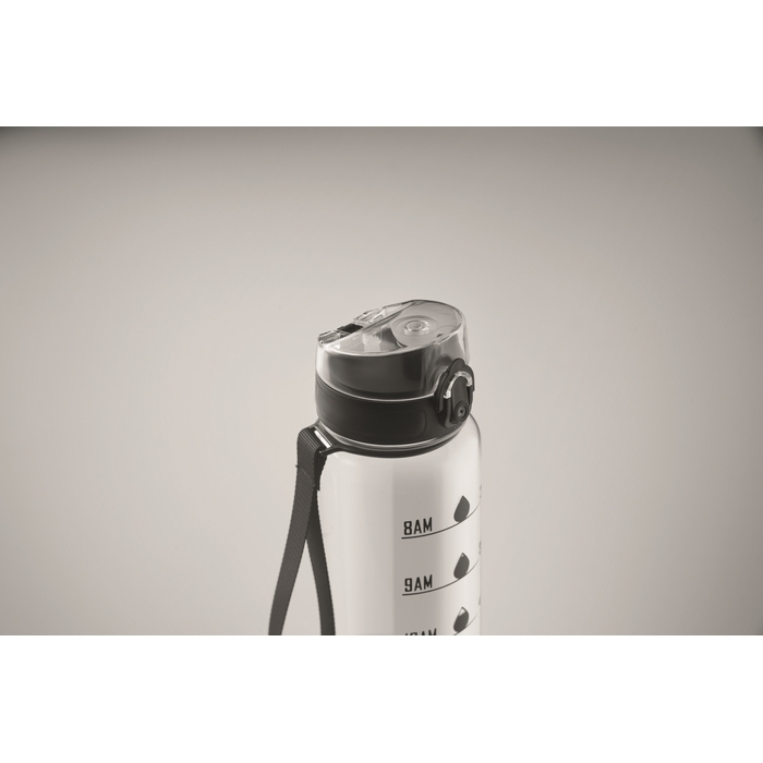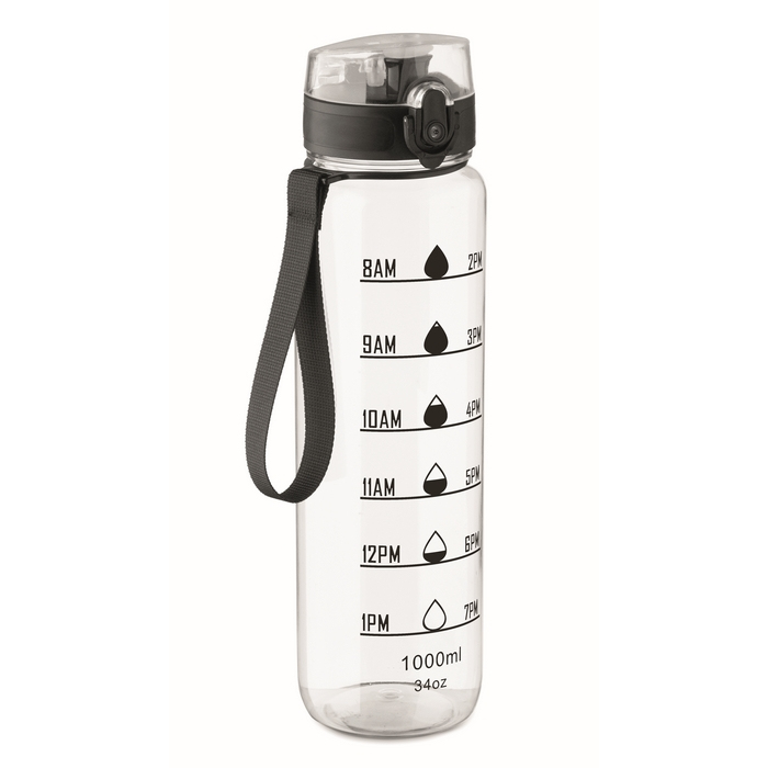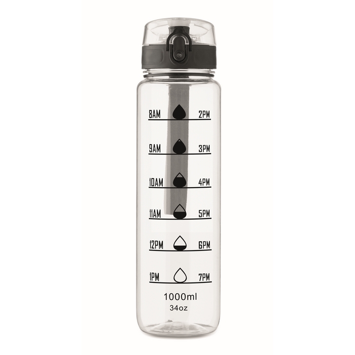 Borraccia in plastica con segni temporali e tappo ribaltabile 1L