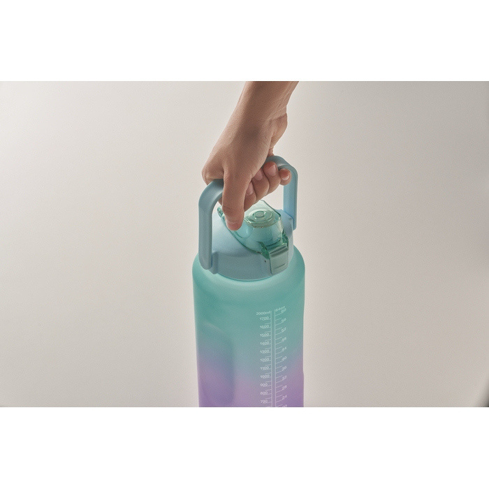 - Bottiglia in RPET 2000ml con tappo a ribalta e manico